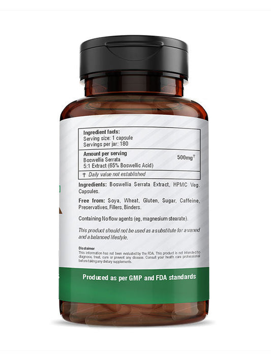 H&C Boswellia Serrata 500mg Capsules | High Strength 5:1 Extract (2500mg Equivalent) | 65% Standardised Boswellic Acid | 180 Veg. Capsules