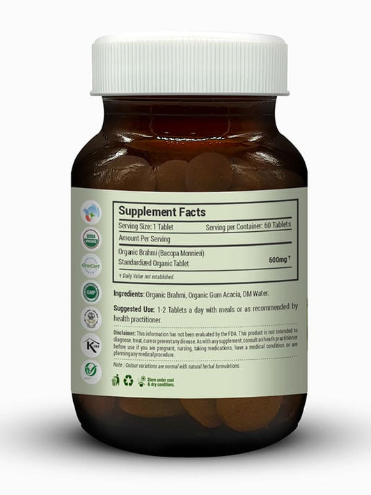 Just Jaivik Organic Brahmi Tablets - 600mg, 60 Tablets