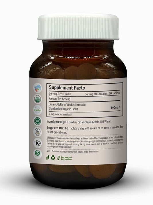Just Jaivik Organic Gokhru Tablets - 600mg, 60 Tablets
