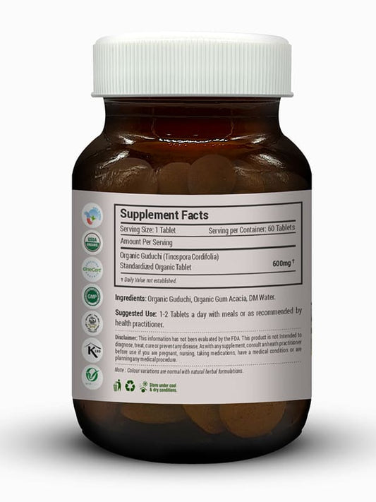 Just Jaivik Organic Guduchi / Giloy Tablets - 600mg, 60 Tablets