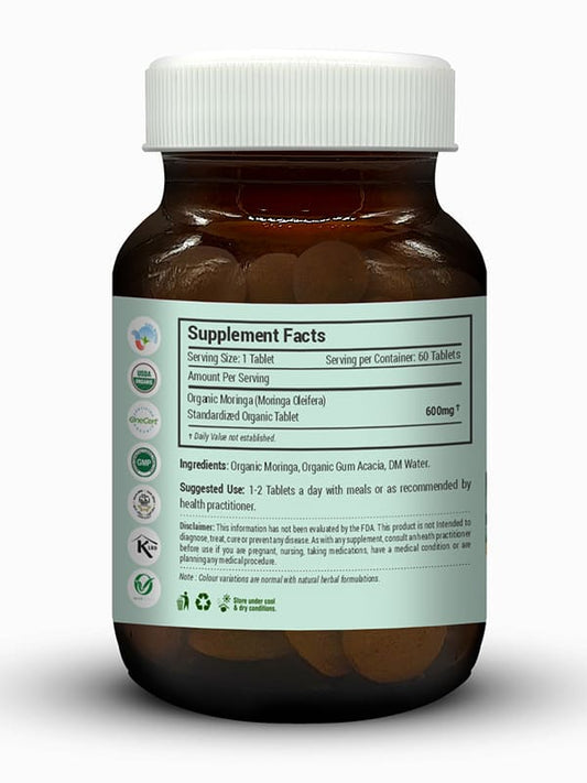 Just Jaivik Organic Moringa Tablets - 600mg, 60 Tablets