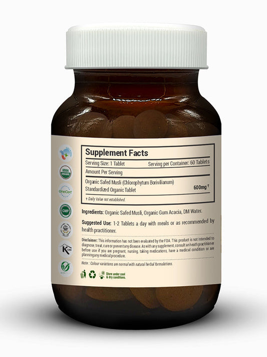 Just Jaivik Organic Safed Musli Tablets - 600mg, 60 Tablets
