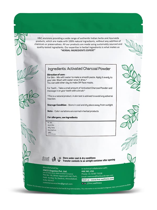 Activated Charcoal Powder from H&C helps in taking out all the impurities from your skin and detoxifying it to give you a refreshing and even-toned look. Made from bamboo charcoal it's very much safe for internal consumption and detoxification. Please consult a health practitioners for dosage size according to your body and health condition.