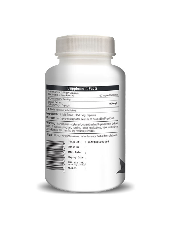H&C Shilajit Extract Veg. Capsules - 450mg, 60 Counts | for Stamina, Powder and Overall Wellness