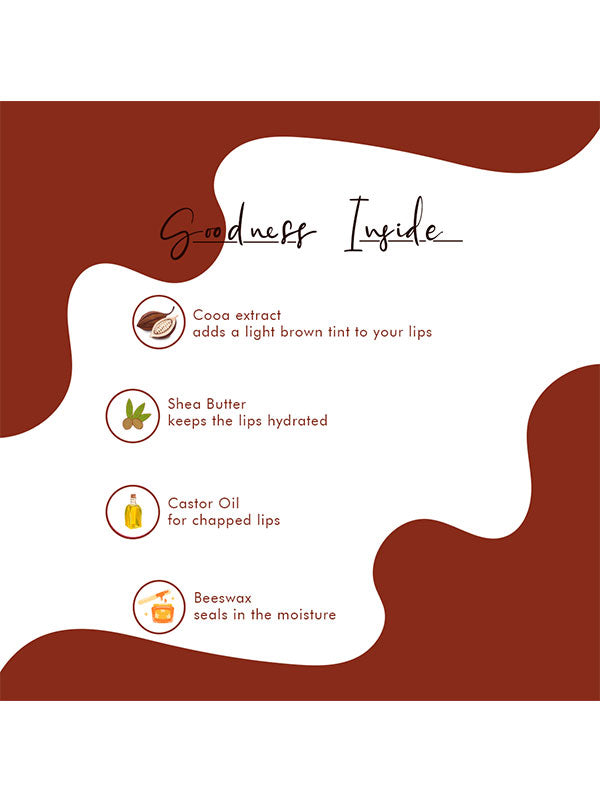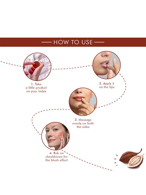 Korus Essential Cocoa lip and cheek is an ideal solution for chapped and undernourished lips. Shea butter acts as a healing agent and keeps the lips hydrated in roughest of weathers while Cocoa can be used as a natural tint or colourant for your lips. Made with the perfect blend of Candelilla wax, that locks the moisture in, and Carnauba wax, that provides a glossy surface, with castor oil. It gives a brownish tint to your lips making them look soft, plumpy and attractive and can also be used on your cheeks for a blush effect.