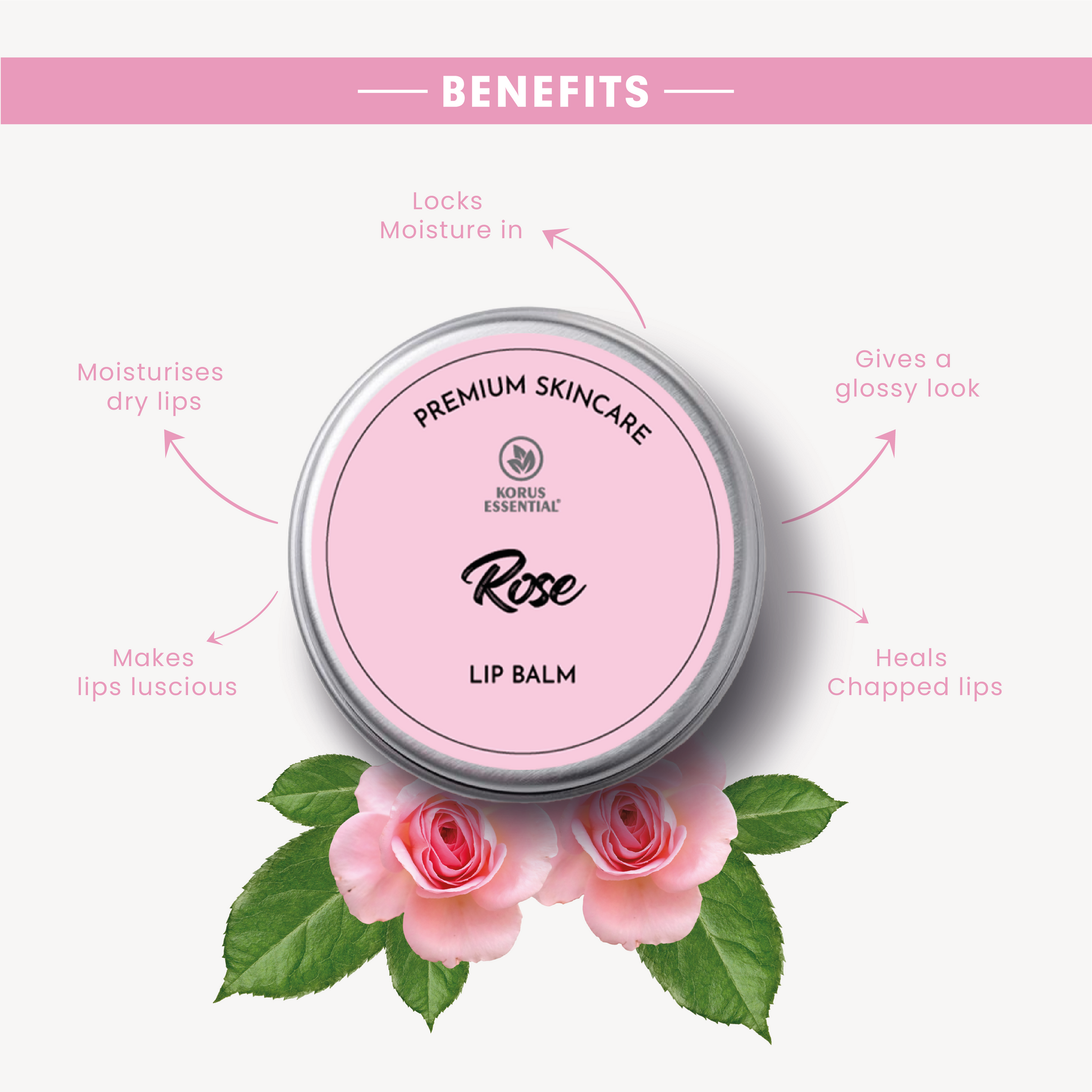 Korus Essential Lip Balms Moisturize your lips with natural ingredients. Our iconic Shea Butter lip balm has been carefully formulated to create a creamy, melting texture.
