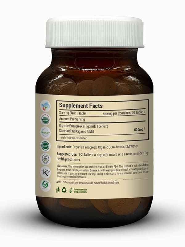 Just Jaivik Organic Fenugreek Tablets - 600mg, 60 Tablets