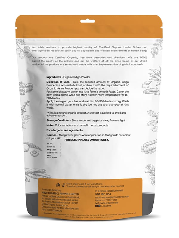 Natural Indigo Powder is an excellent natural alternative to chemical Hair Dyes. When used with natural henna powder it gives a dark brown to shiny black color.