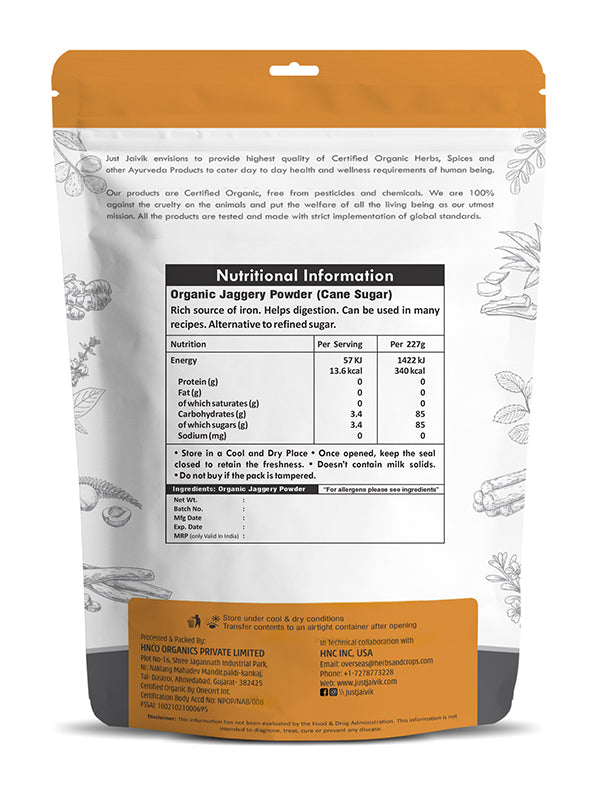Jaggery (Gur) is a natural Cane sugar, renowned for its unique taste & texture. Great for cooking & almost a snack in itself it's very tasty. The benefits of jaggery include its ability to cleanse your body, act as a digestive agent, sweeten your food in a healthy manner, and provide good amounts of minerals. Jaggery is measured to be a rich source of Iron, Calcium, essential amino acid, magnesium, minerals and vital vitamins.