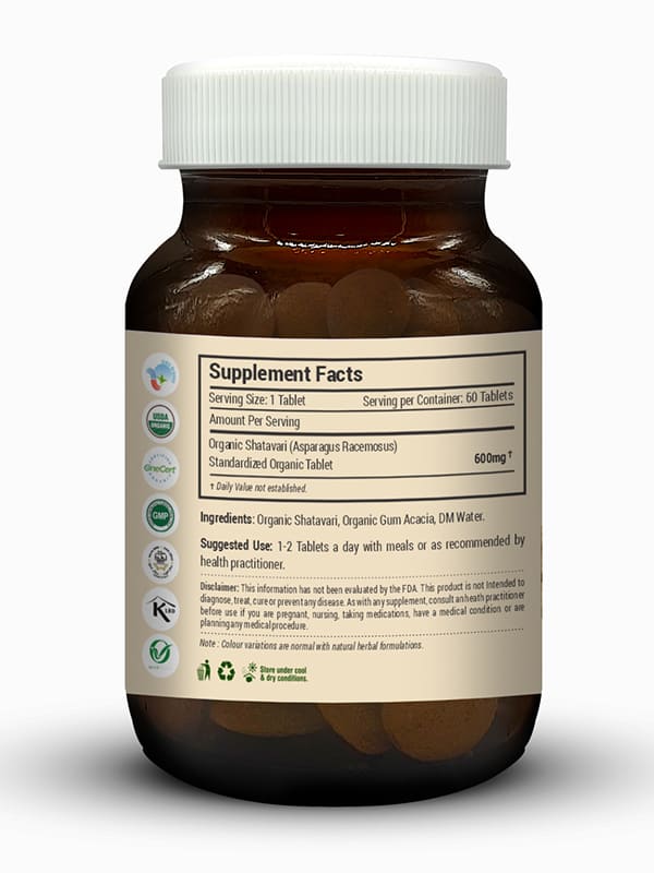Just Jaivik Organic Shatavari Tablets - 600mg, 60 Tablets