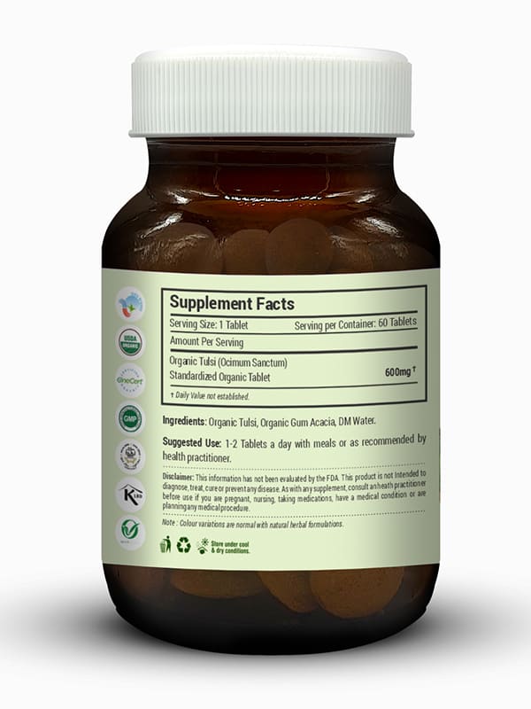 Just Jaivik Organic Tulsi Tablets - 600mg, 60 Tablets