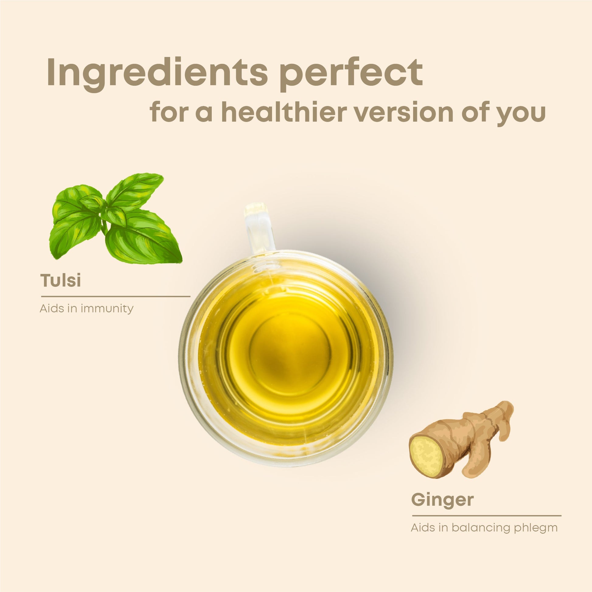 Introducing RESPIRE Herbal Tea, a soothing blend of authentic Ayurvedic herbs like Tulsi and Ginger. Crafted with care, this herbal infusion is believed to promote respiratory health and overall well-being. Indulge in the comforting flavors and fragrances of these herbs, which have traditionally been associated with supporting common cold, cough, and viral infections. Embrace the natural benefits of RESPIRE Herbal Tea as it gently nurtures your respiratory system and enhances your overall vitality. Savor each sip of this invigorating blend and experience a moment of tranquility as you prioritize your well-being.