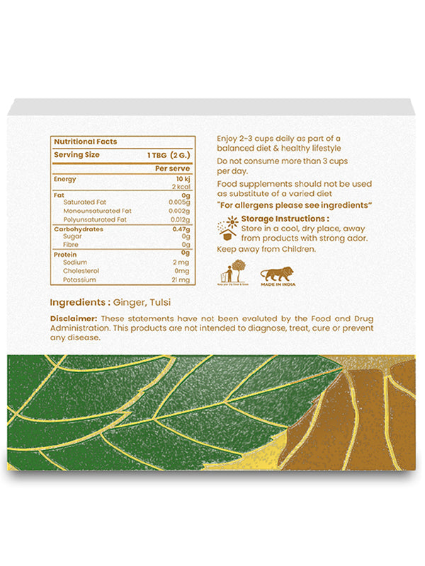 RESPIRE Herbal Tea, a soothing blend of authentic Ayurvedic herbs like Tulsi and Ginger. Crafted with care, this herbal infusion is believed to promote respiratory health and overall well-being. Indulge in the comforting flavors and fragrances of these herbs, which have traditionally been associated with supporting common cold, cough, and viral infections. Embrace the natural benefits of RESPIRE Herbal Tea as it gently nurtures your respiratory system and enhances your overall vitality. Savor each sip of this invigorating blend and experience a moment of tranquility as you prioritize your well-being.