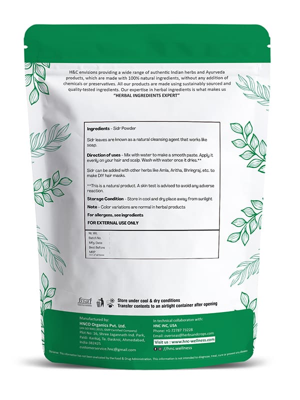 Sidr leaves are known as a natural cleansing agent that works like soap. It contains saponins, tannin, alkaloids, and anti-bacterial agents. It is best to cleanse the hair and skin and the smell is as good as the wet grass.